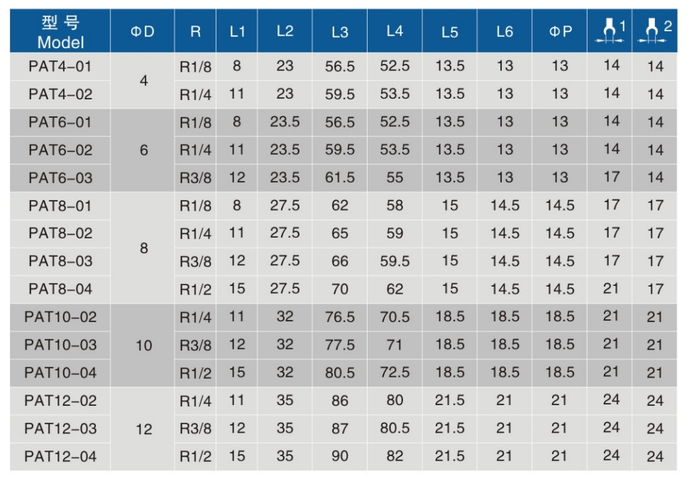 • Thread Specifications:R1/8、R1/4、R3/8、R1/2