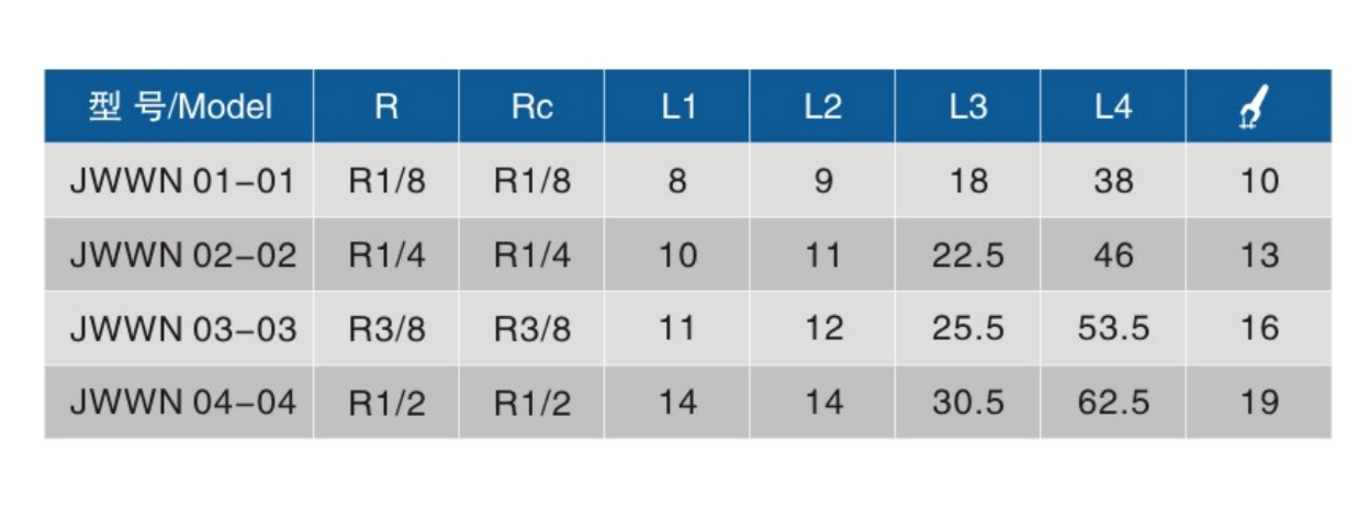 • Thread Specifications Rc: R1/8、R1/4、R3/8、R1/2
