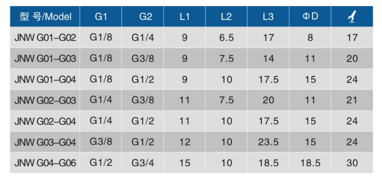 • Thread Specifications G1: G1/8、G1/4、G3/8、G1/2