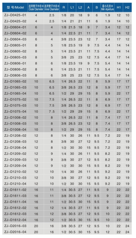 • Diameter Nominal:4*2.5、6*4、8*5、8*6、10*6.5、10*7.5、10*8、12*8、12*9、12*10、16*11、16*12、20*16