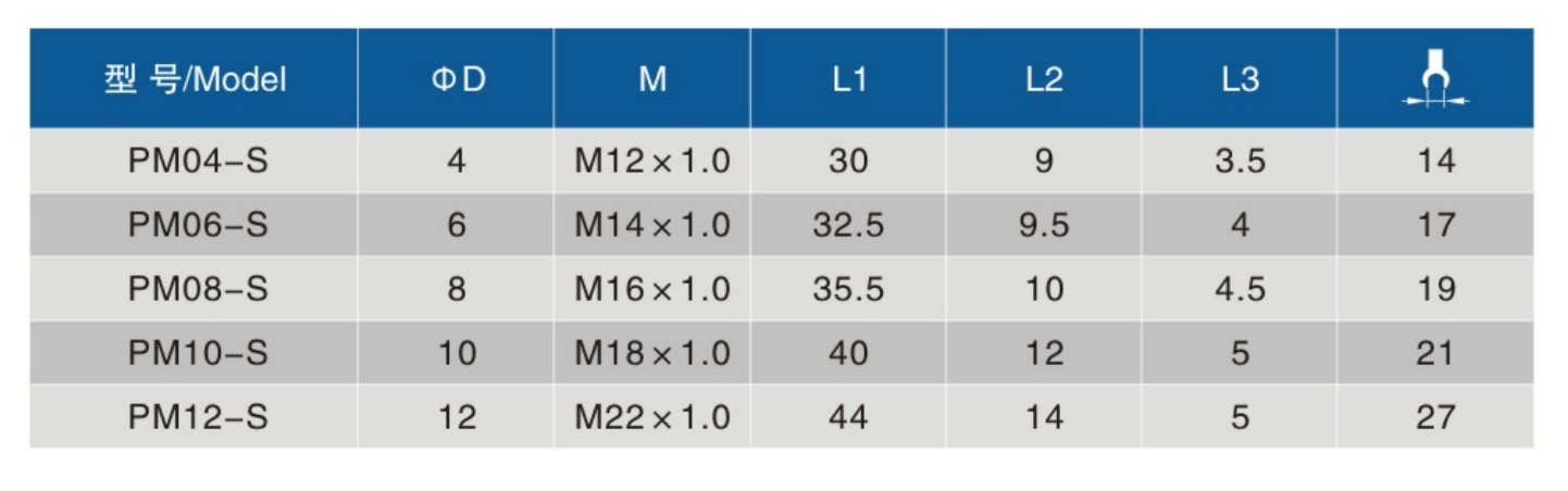 • Thread Specifications:04-S、06-S、08-S、10-S、12-S