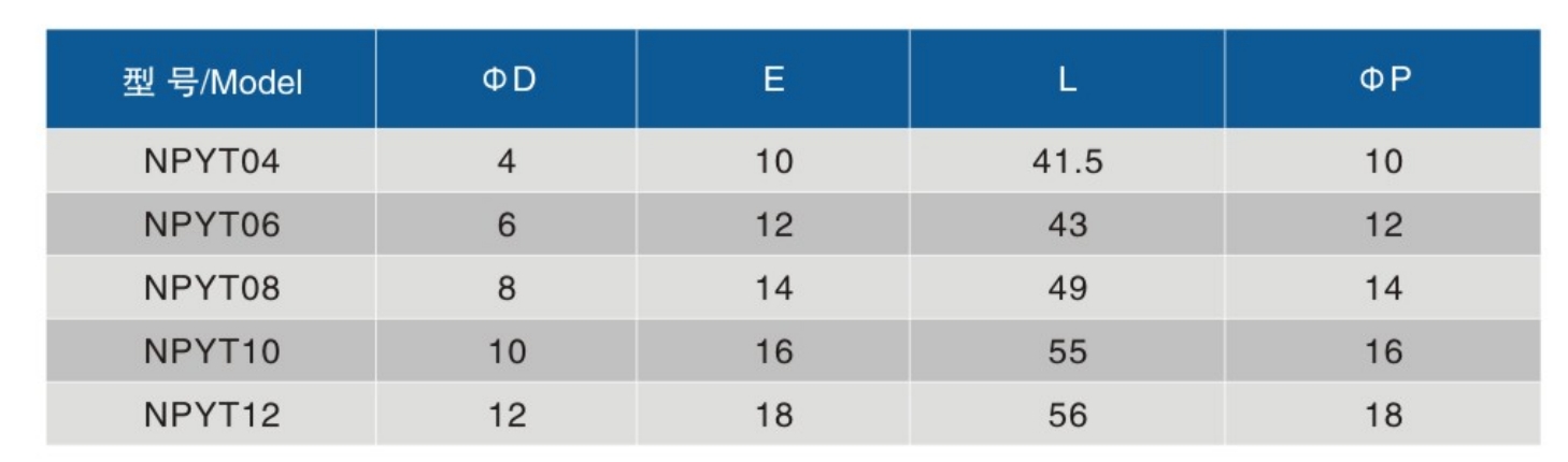 The pneumatic tube fittinos are of excellent flame resistance, heat resistance, and splash resistance·When inserting or unplugging a tube, press the button down to easily insert and unplug without damaging to tubeAfter installation of the straight, three-way, four-way, and other terminal connectors, simply rotate the fittings bodyto adjust thedirection of the tube.