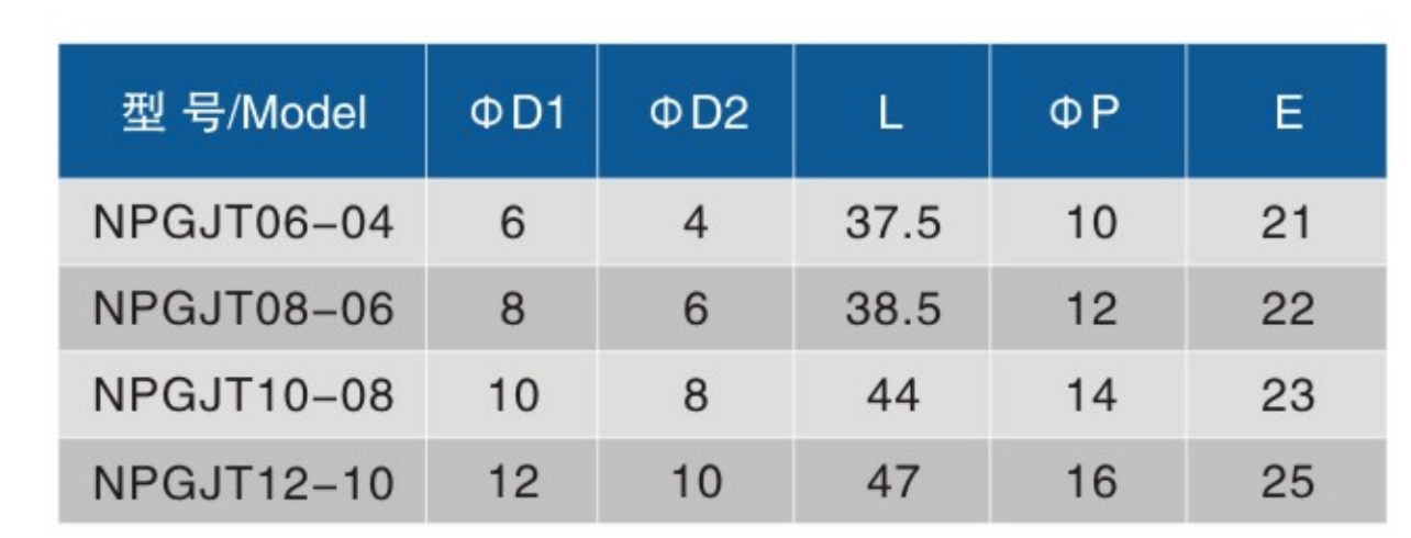 The pneumatic tube fittinos are of excellent flame resistance, heat resistance, and splash resistance·When inserting or unplugging a tube, press the button down to easily insert and unplug without damaging to tubeAfter installation of the straight, three-way, four-way, and other terminal connectors, simply rotate the fittings bodyto adjust thedirection of the tube.