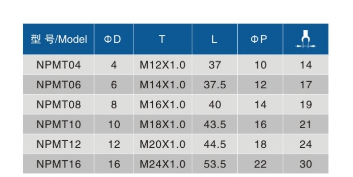 • Thread Specifications:M12X1.0、M14X1.0、M16X1.0、M18X1.0、M20X1.0、M24X1.0