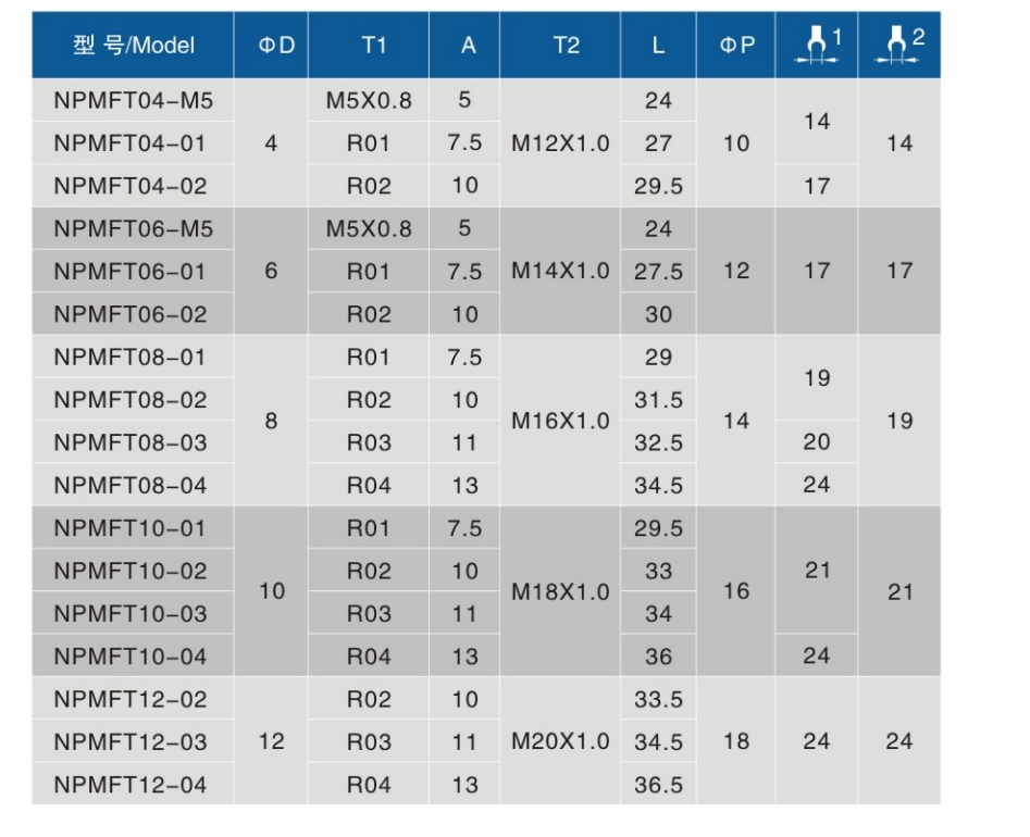 • Thread Specifications:M5X0.8、R01、R02、R03、R04