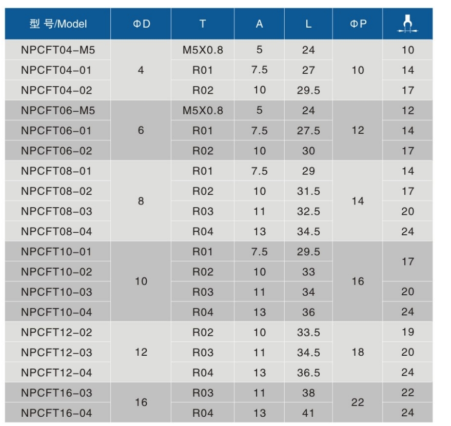 • Thread Specifications:M5X0.8、R01、R02、R03、R04
