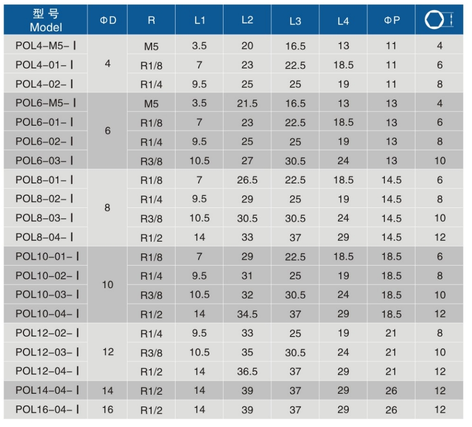 • Thread Specifications:M5、R1/8、R1/4、R3/8、R1/2