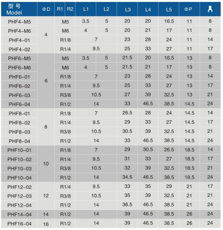• Thread Specifications:M5、M6、R1/8、R1/4、R3/8、R1/2