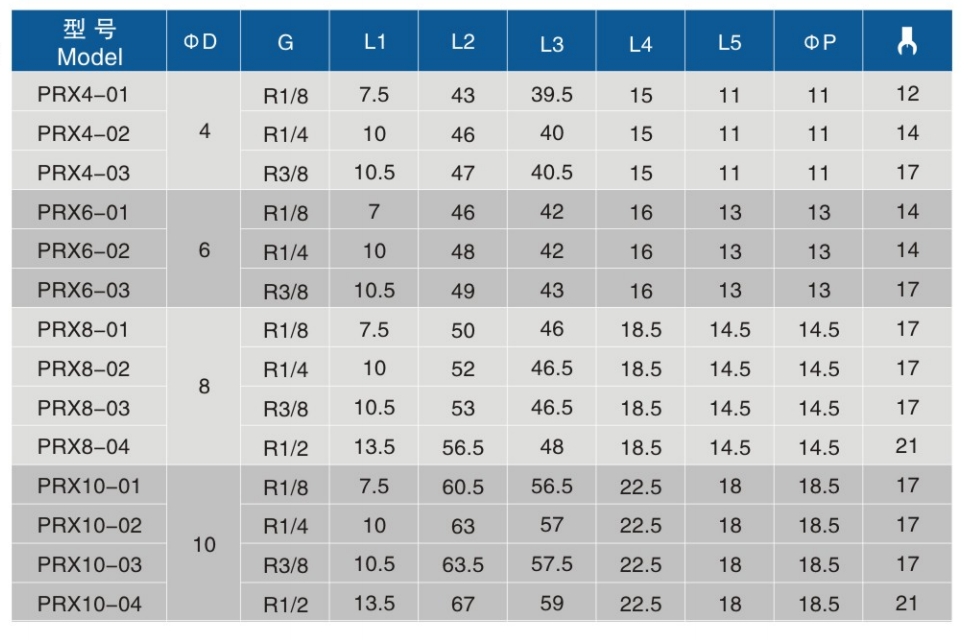 • Thread Specifications:R1/8、R1/4、R3/8、R1/2