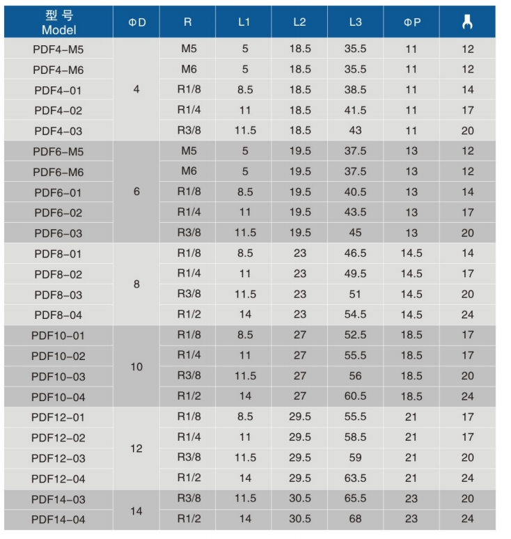 • Thread Specifications:M5、M6、R1/8、R1/4、R3/8、R1/2
